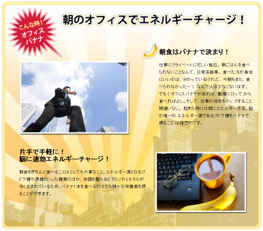 さらに、バナナは個包装不要で衛生的に配布できるため、共有スペースにも適しており、オフィス環境に自然に溶け込みます。